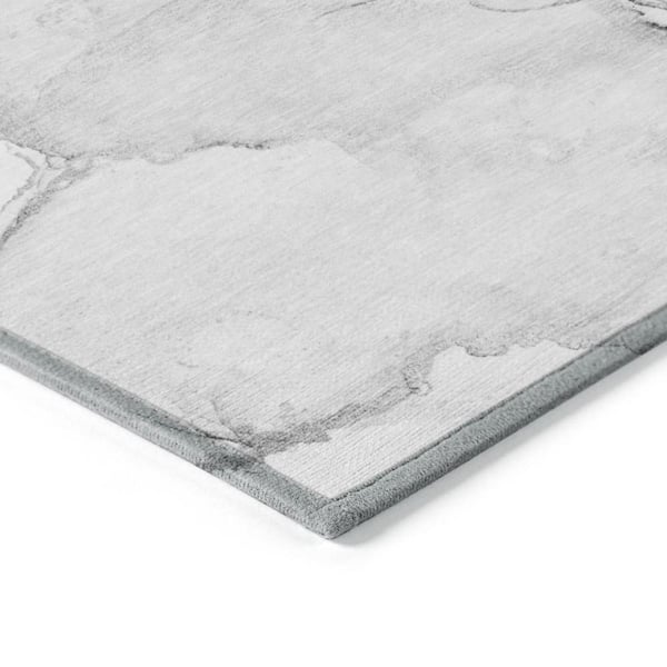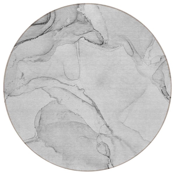 Silver 8 ft. Round Woven Abstract Polyester Round Indoor/Outdoor Area Rug