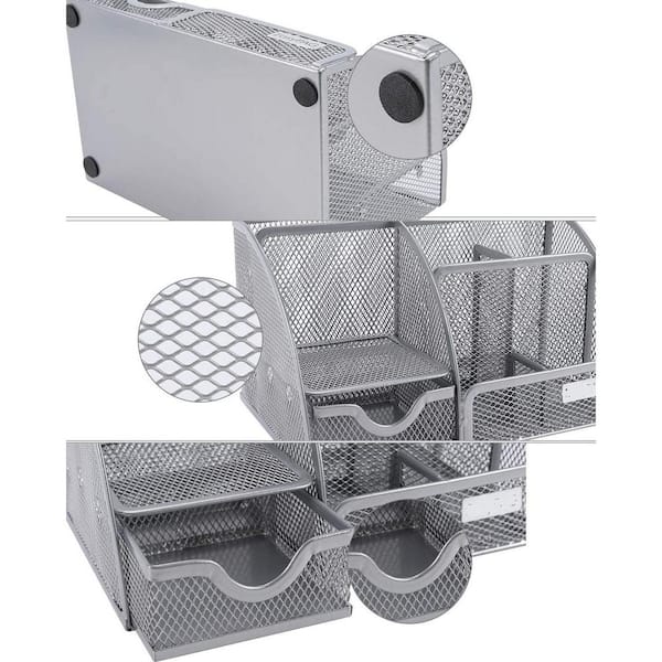 Stylish Silver Gray 6-Compartment Desk Organizer