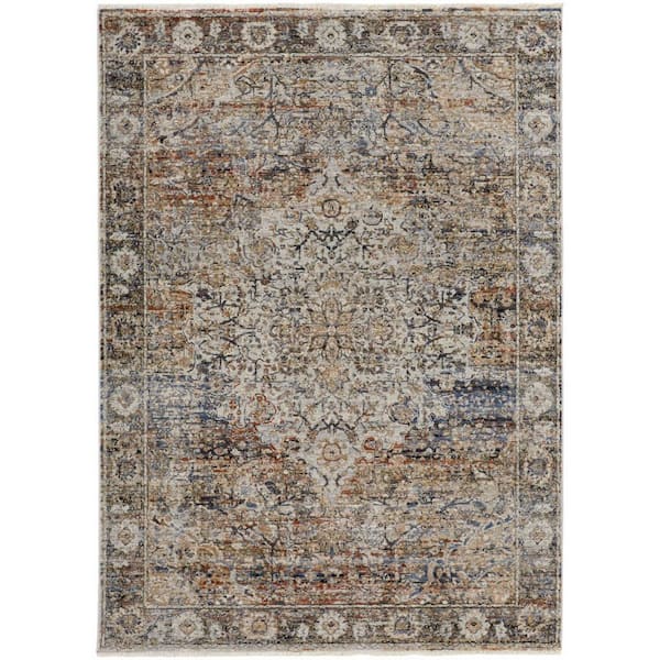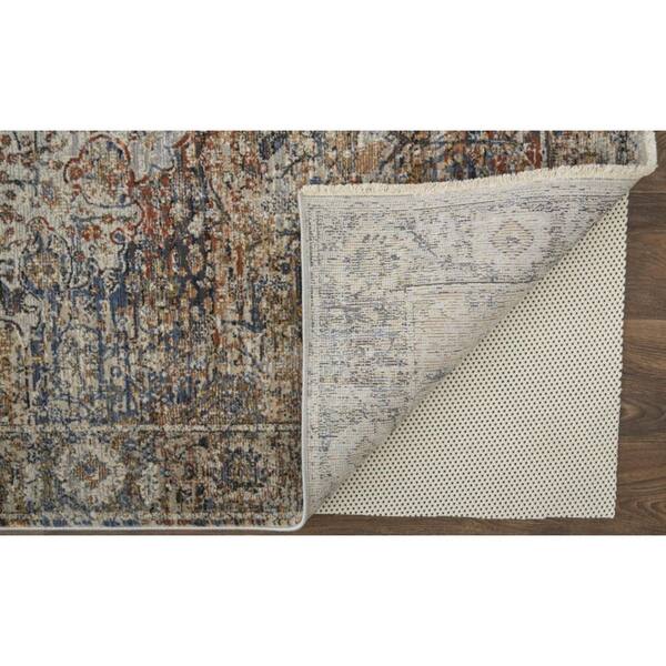 Tan and Blue 12 ft. x 15 ft. Floral Area Rug