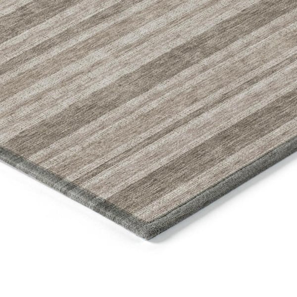 Taupe 10 ft. x 14 ft. Woven Striped Polyester Rectangle Indoor/Outdoor Area Rug
