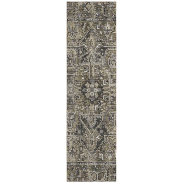 Taupe and Dark Taupe 2 ft. x 8 ft. Woven Oriental Runner Indoor/Outdoor Area Rug