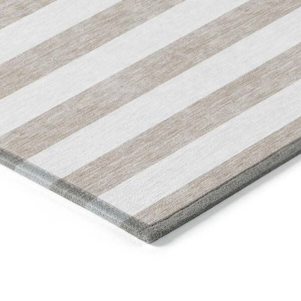 Taupe and White 3 ft. x 5 ft. Woven Striped Polyester Rectangle Indoor/Outdoor Area Rug