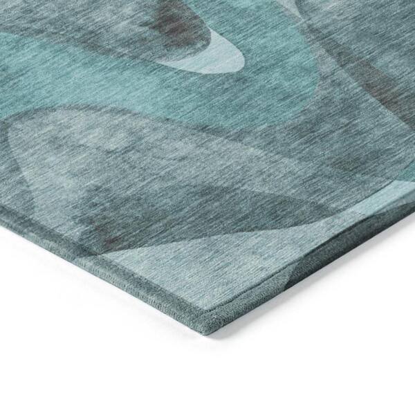 Teal 8 ft. x 10 ft. Woven Abstract Polyester Rectangle Indoor/Outdoor Area Rug