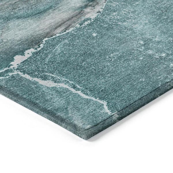 Teal 9 ft. x 12 ft. Woven Abstract Polyester Rectangle Indoor/Outdoor Area Rug