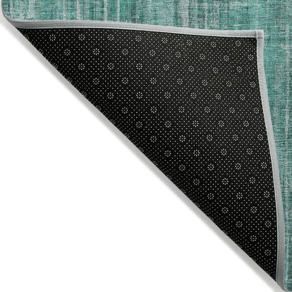 Teal Blue, Aqua, Gray 8 ft. x 10 ft. Woven Striped Polyester Rectangle Indoor/Outdoor Area Rug