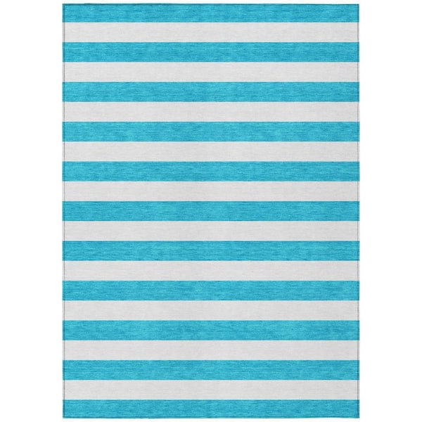 Teal Blue, White 10 ft. x 14 ft. Woven Striped Polyester Rectangle Indoor / Outdoor Area Rug