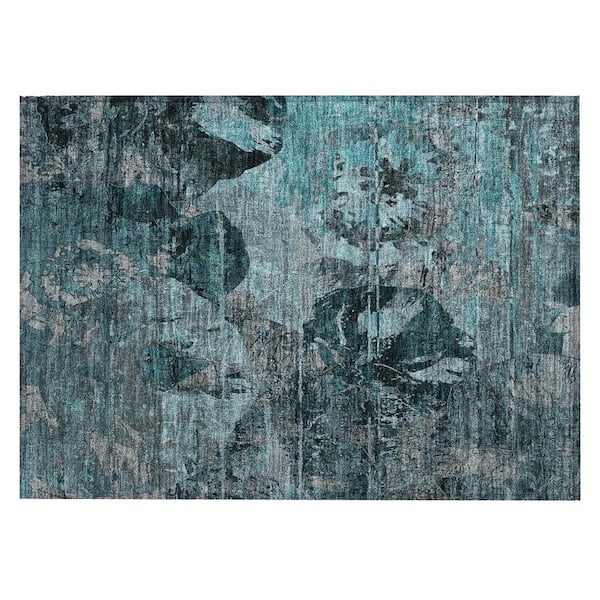 Teal and Gray 2 ft. x 3 ft. Woven Floral Rectangle Indoor/Outdoor Area Rug