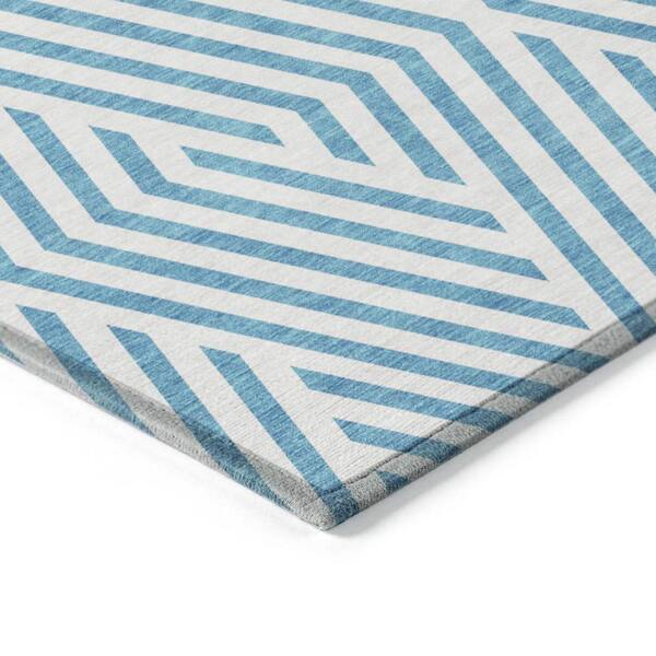 Teal and White 8 ft. Round Woven Geometric Round Indoor/Outdoor Area Rug
