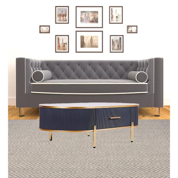 Valerie 23.6 in. Charcoal gray Oval Stone Coffee Table with Storage