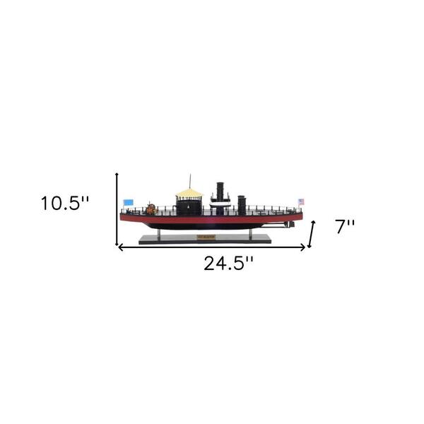 Wood Black and Red Hand Painted Boat Decorative Sculpture