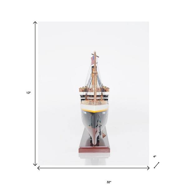 Wood Black and White Hand Painted Titanic Lights Boat Decorative Sculpture