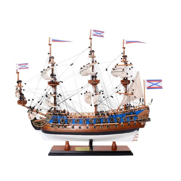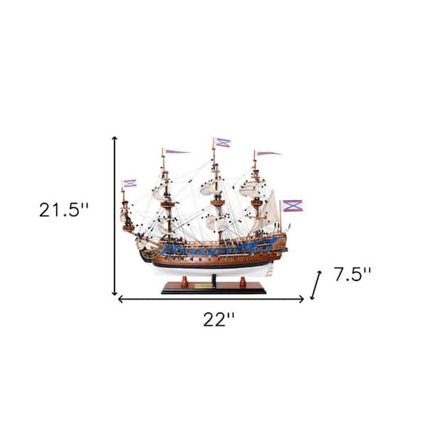 Wood Blue and Brown Hand Painted 1700 Goto Predestination Boat Decorative Sculpture