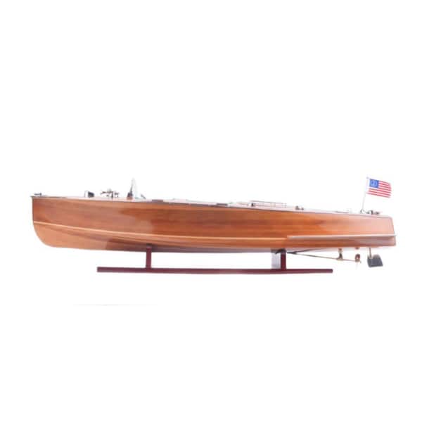 Wood Brown Hand Painted 1928 Chris Craft Triple Cockpit Boat Decorative Sculpture