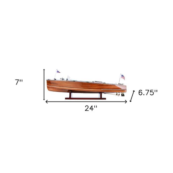 Wood Brown Hand Painted 1928 Chris Craft Triple Cockpit Boat Decorative Sculpture