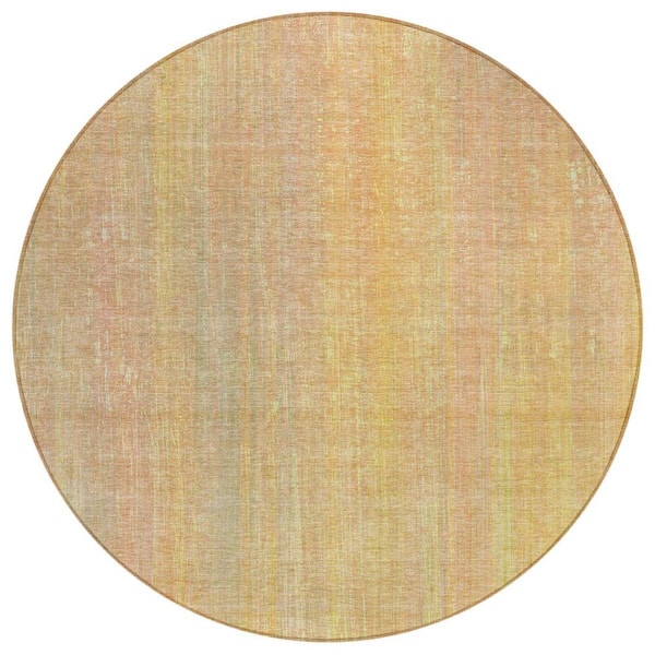 Yellow and Orange 8 ft. Round Woven Striped Round Indoor/Outdoor Area Rug