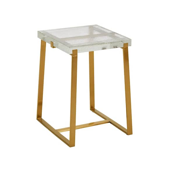 17.5 in. Brass Stainless Steel Glass Top Square End Table