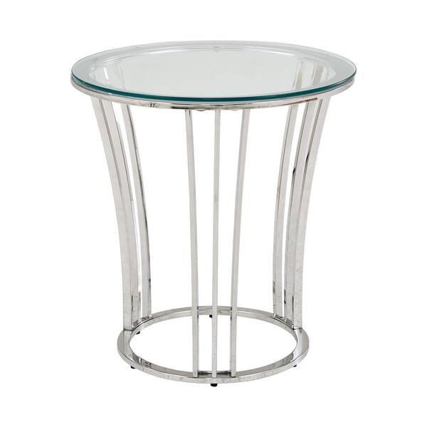 23.1 in. Chrome Finish Round End Table with Glass Top