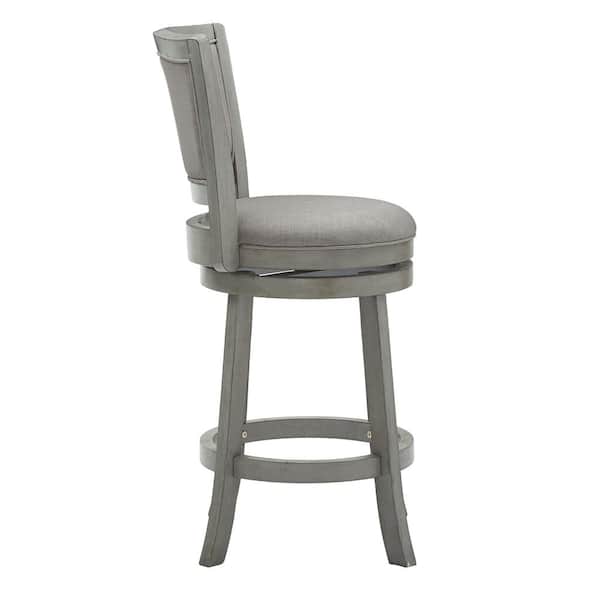 24.37 in. Antique Gray Finish Wood Frame Grey Upholstered Back Swivel Counter Height Stool
