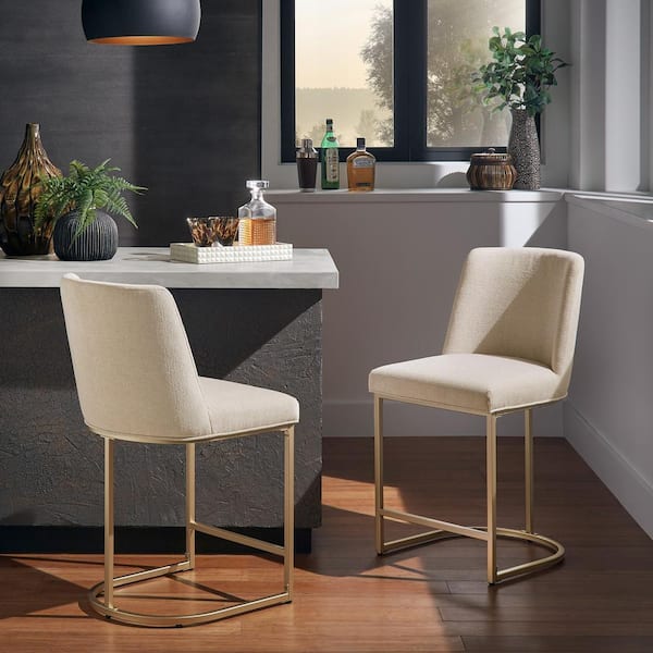 24 in. Beige Metal Counter Stool (Set Of 2)