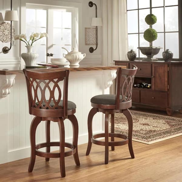 24 in. Dark Gray Scroll Back Linen Swivel Counter Height Stool