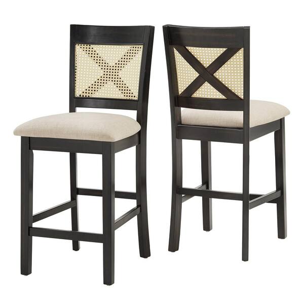 26.32 in. Black Cane X-Back Wood Accent Counter Height Chair (Set of 2)