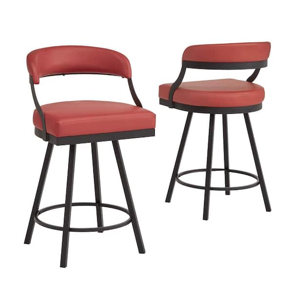 26.5 in. Red Vegan Leather Black Finish Metal Frame Swivel Chair (Set of 2)