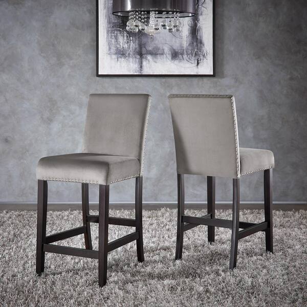 26 in. Gray Nailhead Velvet Upholstered Wood Frame Counter Height Chairs (Set Of 2)