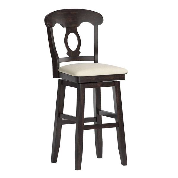 Antique Black Napoleon Back Wood Swivel Bar Stool