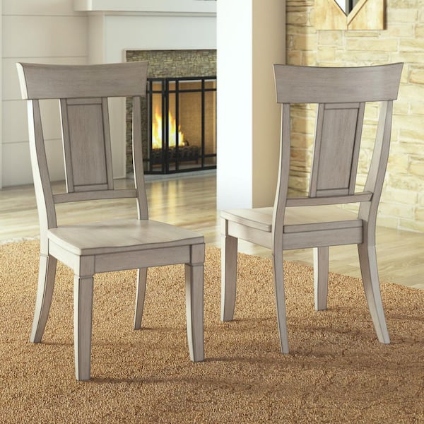 Antique White Panel Back Wood Dining Chairs (Set Of 2)
