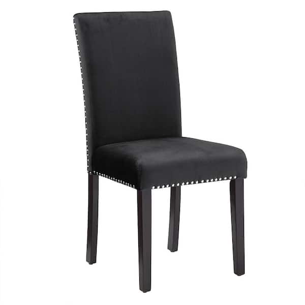 Black Nailhead Velvet Upholstered Dining Chairs (Set Of 2)