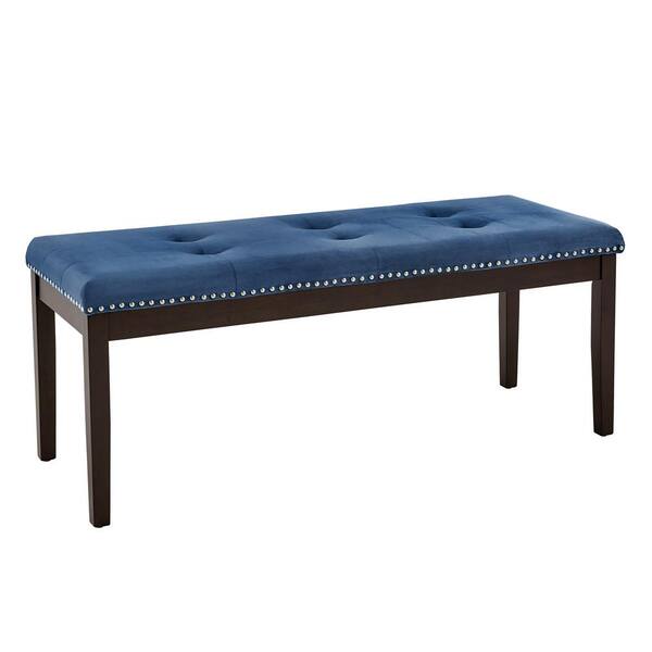 Blue Velvet Tufted Nailhead Dining Bench 49 in.