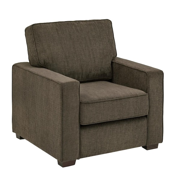 Brown Chenille Fabric Upholstered Square Arm Sofa