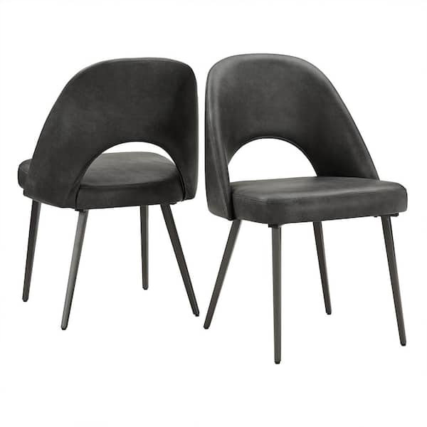 Dark Grey Upholstered Dining Chairs (Set Of 2)