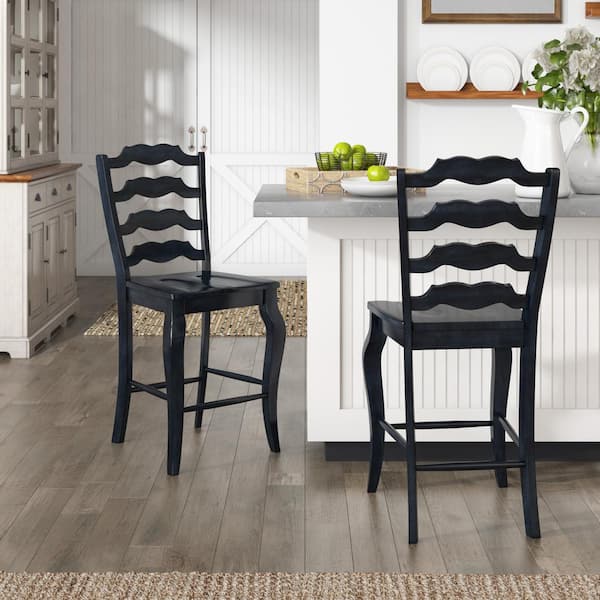 Denim French Ladder Back Wood Counter Height Chair (Set of 2)