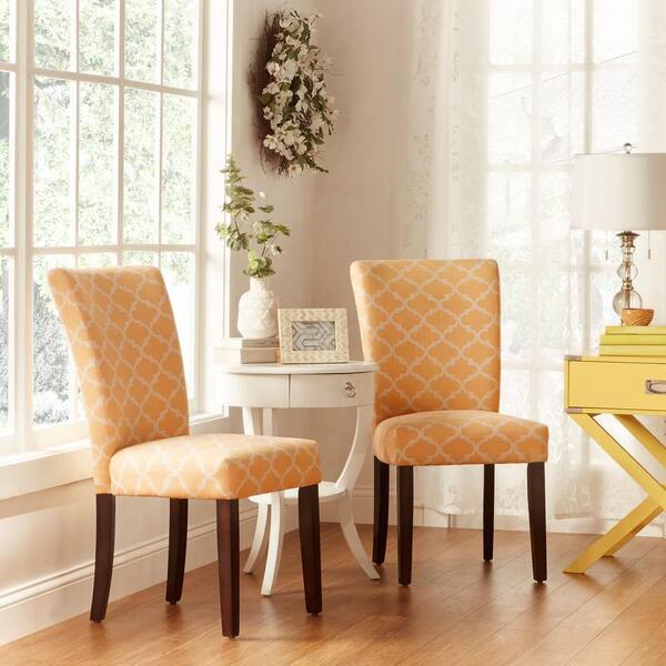 Espresso Banana Yellow Pattern Fabric Parson Chair (Set of 2)