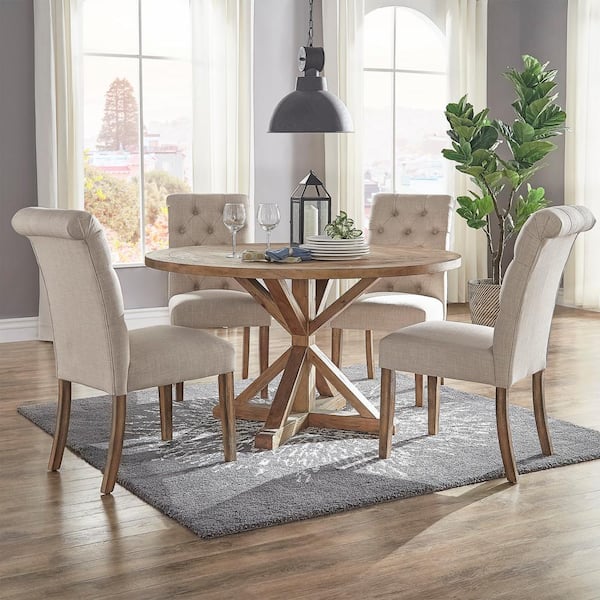 Huntington Beige Linen Button Tufted Dining Chair (Set of 2)