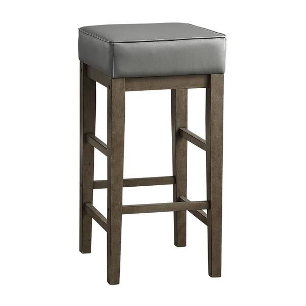29 Inch Pub Height Wooden Bar Stool Leather Seat Barstool, Gray