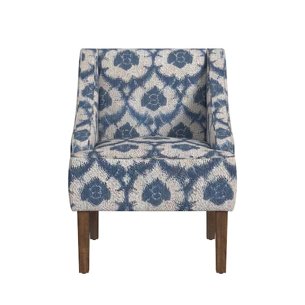 Classic Swoop Blue Ikat Print Fabric Upholstery Arm Chair