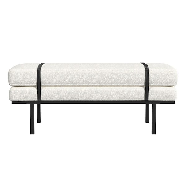 Cream Boucle 46 in. Bedroom Bench without Back with Metal Base