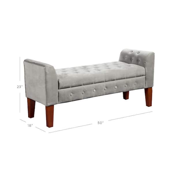 Light Gray Velvet 50 in. Settee Bedroom Bench Without Back Tufted with Storage