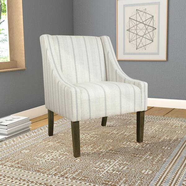 Striped Dove Grey Poly-Linen Modern Swoop Accent Chair