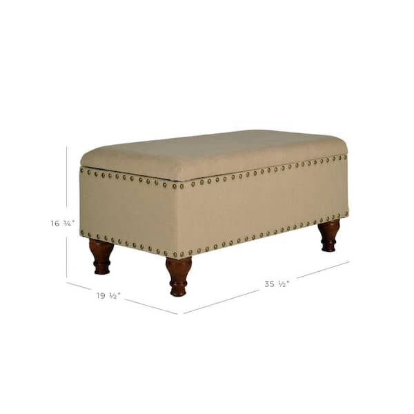 Tan Rectangle 35.5 in. Bedroom Bench Without Back with Nailhead Trim and Storage