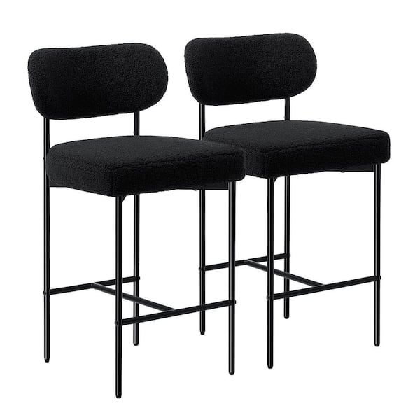 26 in. H Black Kitchen Bar Stools Counter Height Bar Stools with Adjustable Foot Pads (Set of 2)
