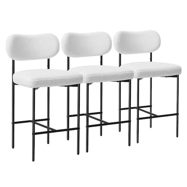 26 in. H White Kitchen Bar Stools Counter Height Bar Stools with Adjustable Foot Pads (Set of 3)