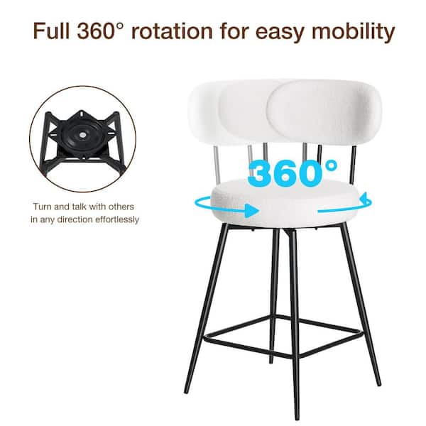 26in. H White Swivel Upholstered Bar Stools Counter Height Bar Stools with Adjustable Foot Pads (Set of 2)