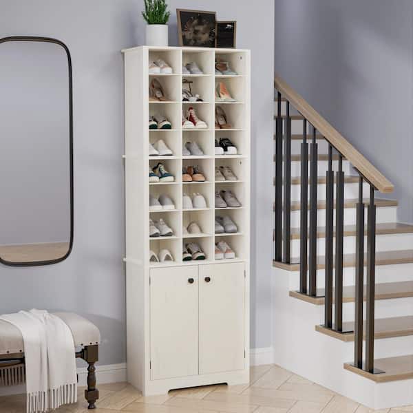 71.9 in. H x 24.4 in. W White Particle Board Shoe Storage Cabinet with 24-Shoe Cubbies and Cabinet
