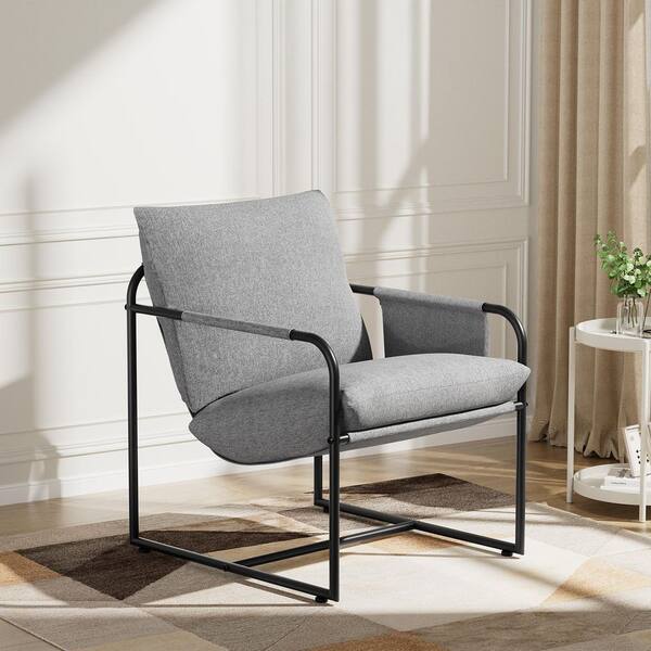 Gray Linen Accent Chair Modern Armchair with Cushions