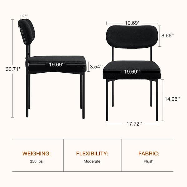 Modern Black Upholstered Dining Chairs Boucle Dining Chair with Adjustable Foot Pads Set of 4