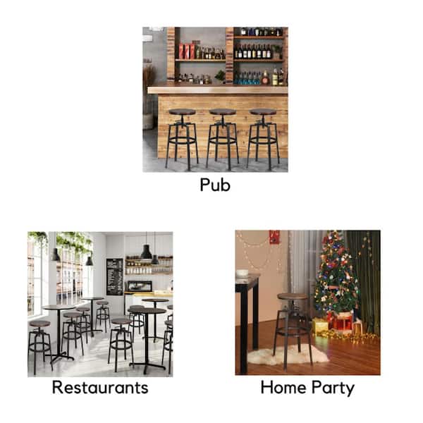 AMAT 24-29 in. Adjustable Height Walnut Backless Metal Frame Industial Counter and Bar Stool (Set of 2)