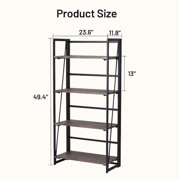 BAHWT Folding 39.37 in. W. Writing Desk and Bookcase Set, Space-Saving Design with Rustic Wood Shelves and Steel Frame